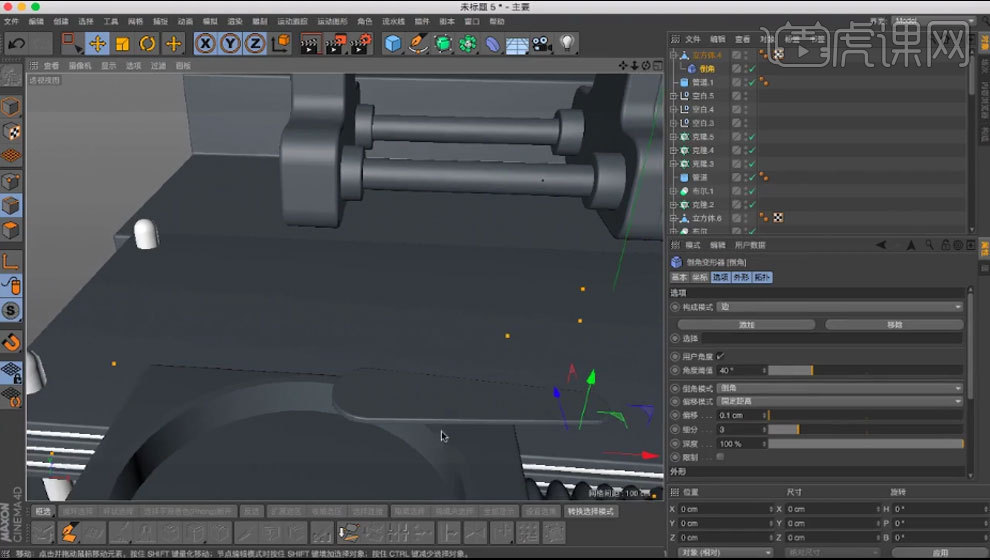 做为样条的接口。放正在管道里。新建【立方体】,调整【偏移】。添加【倒角】。
