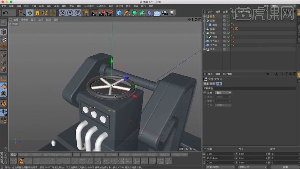 3.新建【克隆】,新建【管道】,调整参数。新建【圆环】和】圆柱】,调整大小。4.导入手模子,左键选择【柔性差值】。